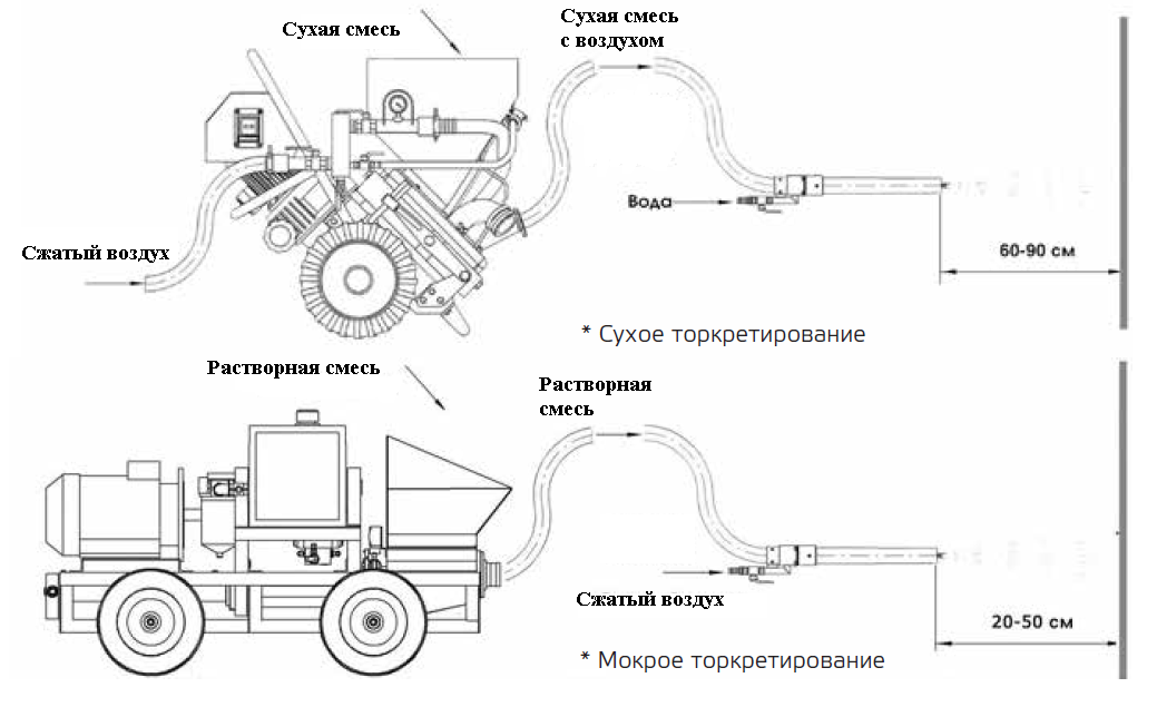 Рис. 3 – Технологическая схема сухого и мокрого торкретирования